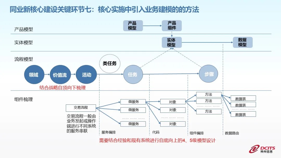 四是核心建设中如何引入业务建模的方法。面对越来越复杂的业务场景需求,原本更多基于功能的应用开发流程已经难以适用银行业务开发的需要。而业务建模这一新型开发方式越来越受到重视,如何在核心建设中引入业务建模这一先进方法,流程识别和组件梳理是两个关键。